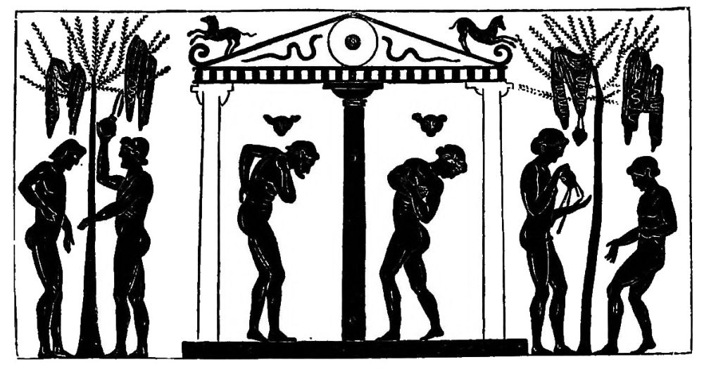 | 75. | Attic School Instruction. Vase-painting by Duris. From Arch. Ztg. for 1869. Plate 1 | 105 |