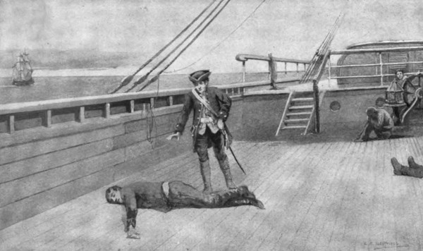 [287] "Instantly the hatches were thrown off, and the men swarmed up from below! As they came up they fired at every man they saw on the Eagle, killing the captain and two others, and astonishing the rest of the crew so that they ran below. Then I ordered the firing to cease; and as soon as I had done so, one of the Eagle's crew came up and lowered her colors. At the same time my men swarmed into the sloop; and in five minutes we had her headed to New York, where we arrived with our prisoners, and were received with great enthusiasm.