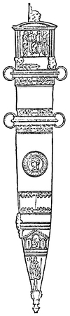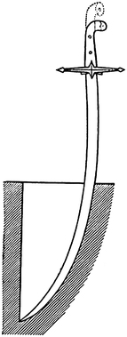 On a lower plane the Sword became the invention and the favourite arm of the gods and the demi-gods: a gift of magic, one of the treasures sent down from Heaven, which made Mulciber (‘Malik Kabír,’ the great king) divine, and Voelunder, Quida, Galant, or Wayland Smith a hero. It was consecrated to the deities, and was stored in the Temple and in the Church. It was the ‘key of heaven and hell’: the saying is, ‘If there were no Sword, there would be no law of Mohammed’; and the Moslem brave’s highest title was ‘Sayf Ullah’—Sword of Allah.
