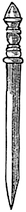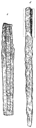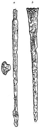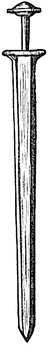 During the Late Celtic Period the Britons, like the Gauls, were armed with gladii sine mucrone, which Tacitus[1040] calls ingentes and enormes, These Spathæ must have grown out of the bronze rapier. A monument found in London and preserved at Oxford shows the blade to have been between three and four feet long.[1041]