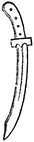 IV. The first idea of a trenchant or cutting instrument would be suggested by various reeds and grasses; their silicious leaves at certain angles cleave to the bone, as experience has taught most men who have passed through a jungle of wild sugar-cane. When full-grown the plants stand higher than a man’s head, and the flint-edged leaves disposed in all directions suggest a labyrinth of sword-blades. Thus the Mawingo-wingo (Pennisetum Benthami), like the horse-tail or ‘shave-grass’ of Spain, was used as knives by the executioners of Kings Sunna and Mtesa of Uganda, when cutting the human victims to pieces.[38] Of the same kind are the ‘sword-grass’ and the ‘bamboo-grass.’ Many races, especially the Andamanese and the Polynesian Islanders, make useful blades of the split and sharpened bamboo: they are fashioned from the green plant, and are dried and charred to sharpen the edge. Turning to the animal world, the cassowary tears with a forward cut, and the wounded coot scratches like a cat. The ‘old man kangaroo,’ with the long nail of the powerful hind leg, has opened the stomach of many a staunch hound. The wild boar attacks with a thrust, followed by a rip, cutting scientifically from below upwards. This, as will appear, is precisely the plan adopted by certain ancient forms of sabre, Greek and barbarian, the cutting edges being inside, not outside, the curve. I may add that the old attack is one of our latest improvements in broadsword exercise.[39]