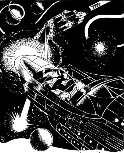 Once more they dropped away from the Friar. Murphy, Stoller and Cass came booming along after them, jets belching and the whole, tiny craft leaping like a released whippet in the effort to pace Larry.
