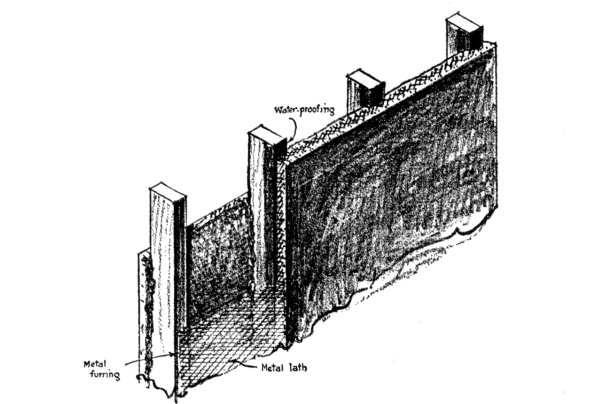 All small houses may be classified into four types, according to their construction. The first type is the commonest and is the wooden frame structure. This has exterior walls and interior partitions built of light wooden studs, and the floors and ceilings framed with wooden joists. The exterior walls may be covered with clapboard, shingles, stucco, brick veneer, or stone veneer. The roof is generally covered with wooden shingles, although slate, tile, asbestos, and asphalt [Pg 8] shingles are often used. These houses are the most numerous, because the cost of wood in the past has been so much less than other materials that they appealed to the average builder’s financial sense. However, the cost of such dwellings to the country as a whole has been very high, for they are extremely dangerous when attacked by fire. More than twenty-two millions of dollars are wasted by fire each year in these houses. They also cost us a great deal in up-keep. It would be interesting to see what was the total cost per year to repaint them and keep the roofs in order. It certainly would run into the millions. Although wood increased from about $30.00 per thousand board feet to about $85.00 in the Eastern markets from pre-war days, and is now dropping below $55.00, yet the wooden house is still listed as the cheapest, for the cost of other materials has also increased, as brick from $10.00 per thousand to $23.00 until very recently, and cement from $2.00 to $3.25 per barrel. In any comparison of cost the wooden frame building is taken as the base or cheapest type of construction, although it is the most expensive in up-keep and fire-hazard of all. Until the price of wood increases in excessive proportion to other materials, there is no doubt that this type of house will be the commonest. However, there is much that can be done to make them more fire-resisting, and, although we cannot look to the speculative builders to use such methods, since they increase the costs slightly, yet the architect should not overlook them.
