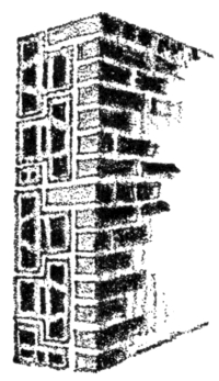 The second type of dwelling which is next in vogue has exterior walls of stone, brick, concrete, or terra-cotta, and interior floors, [Pg 9] partitions, and roof of wooden frame construction. These are very slightly more fireproof than the wooden frame structure, and as a class they are more costly in the beginning, but require less expense in up-keep. They resist attack from external fires better than the wooden frame building, but if the fire starts within, they will burn just as readily. Although the fire loss per year of this class is not nearly as great as for the first type, yet it must be appreciated that there are not so many of them. The chief advantage of the masonry house of this second type lies in the lowered cost of up-keep, longer life, and saving of heating-fuel in the winter. A great deal of literature has been circulated by brick, cement, and hollow terra-cotta tile manufacturers by which the public has been educated to believe that this type of structure is much more fire-resisting than it is. Of course this campaign of education was intended to stimulate interest in their product, and it had no unselfish motive back of it. The result of this propaganda is evident in the public belief that such houses are fireproof houses, while as a matter of fact they are not. [Pg 10]