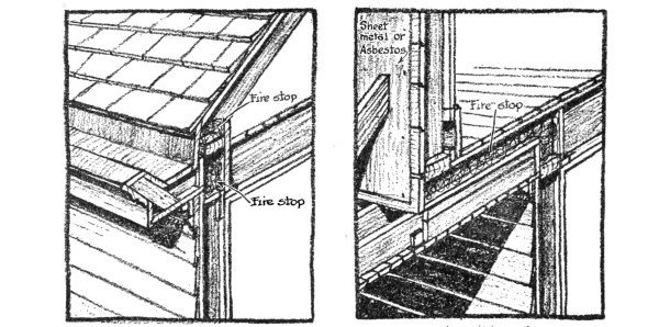 Cost Does Not Indicate Fire-Resistance.—In this classification of buildings it would almost seem that the cost of a building indicated its fireproof qualities. This is not true, however. There are many expensive dwellings which are just as great fire-traps as the less expensive ones. In both cases the fire hazards are the same, if they are built of the same type of construction. In fact, we could build a $60,000 dwelling according to Type II, and also a $10,000 one according to Type II, and make the latter more fire-resisting than the former by using certain precautions of construction in which the spread of fire is retarded.