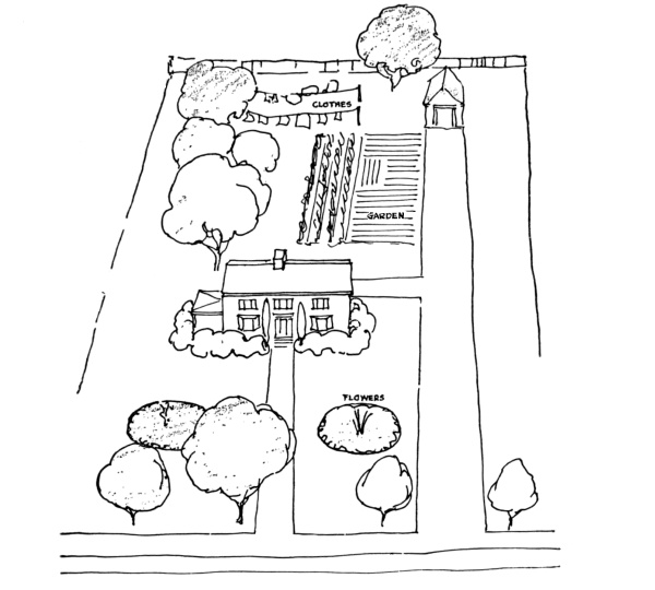 Next in importance to planning the setting of the house and its appearance from the street should be the planning of the views from windows of the house itself. The development of the private garden at the back is one help which was previously alluded to, but there are generally ugly things which can be seen from the windows of the house that need screening out. These ugly objects may be on the neighboring property, or they may be the drying-yard for the clothes, or the garage. Whatever they are, a screen of trees can be used to shut them from the view.