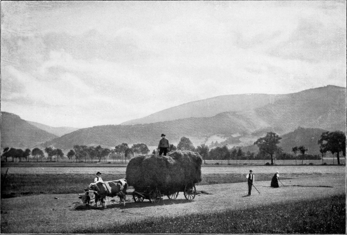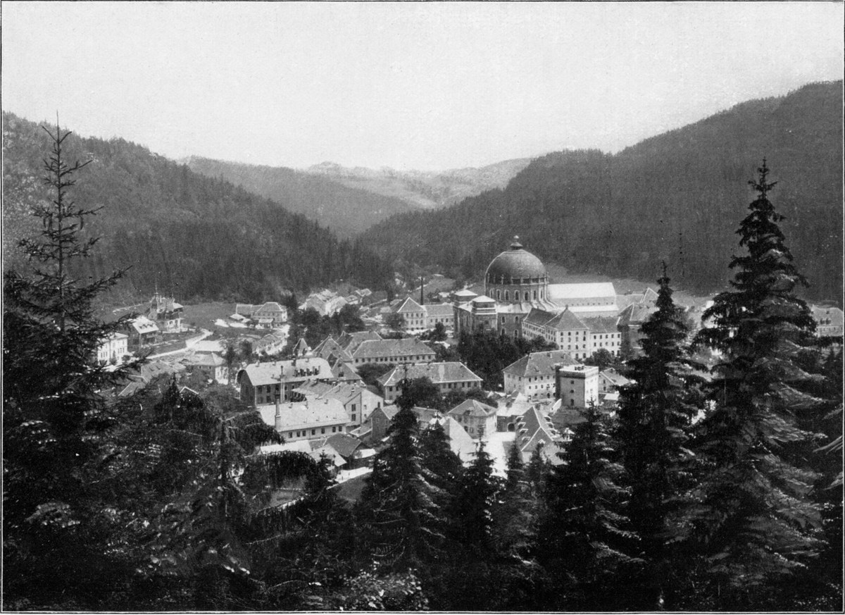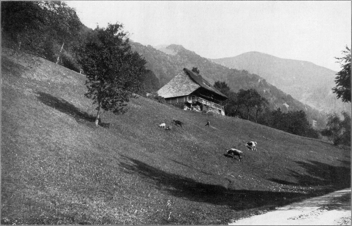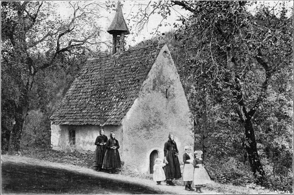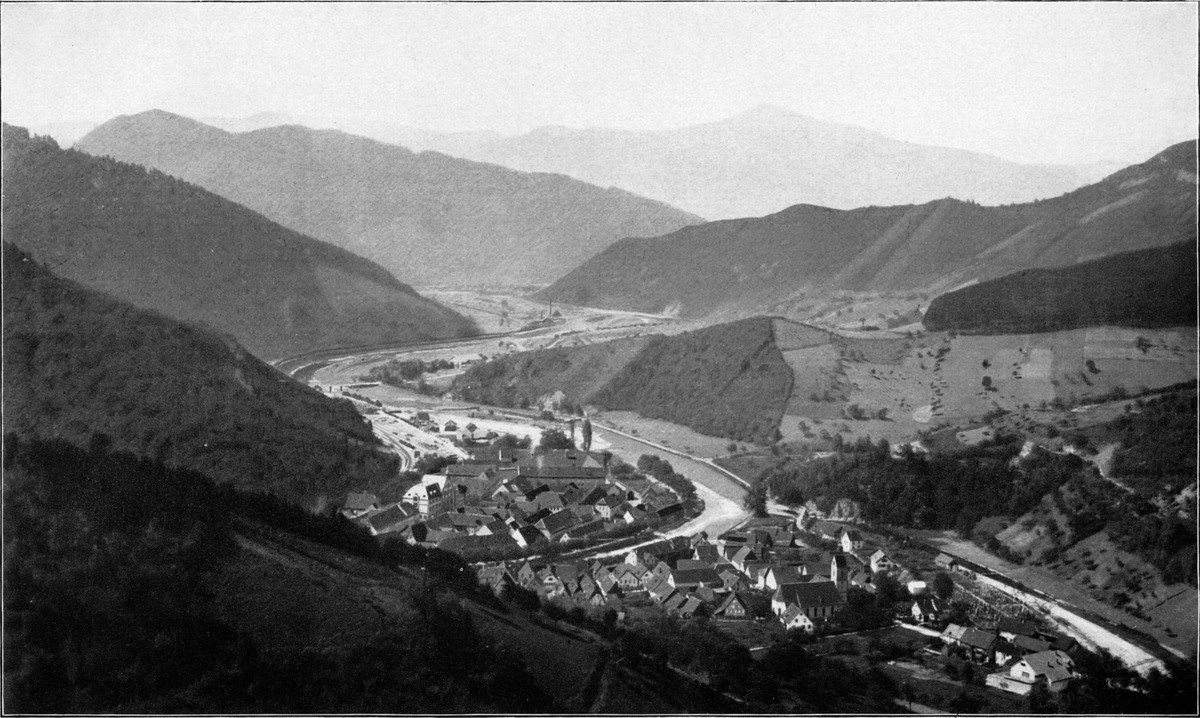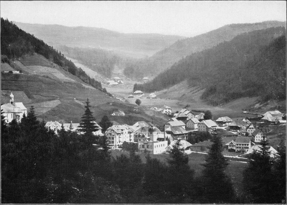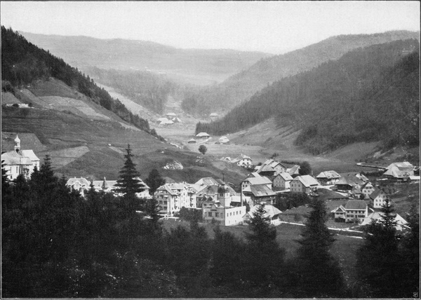 Wem es auf diesem Wege der Einsamkeit zu viel werden möchte, der fahre von Wolfach durch das belebte, sonnige Schapbach- oder Wolfachtal nach dem eleganten, trefflich eingerichteten Bad Rippoldsau (566 m, Abb. 155). Die Talbewohner in ihrer Tracht, die besonders am Sonntag das farbenfreudige junge Mädchenvolk recht hübsch erscheinen läßt, werden dem Besucher viel Freude machen (Abb. 153). Das wenig unterhalb des Bades gelegene „Klösterle“ war einst ein Priorat des Benediktinerstiftes St. Georgen, jetzt ist es Pfarrkirche für das obere Talgebiet. Ganz wunderbar schöne Wege zum Gehen und Fahren lassen uns durch den prachtvollen Wald nach dem unfernen Freudenstadt hinüber und hinauf auf den Kniebis gelangen.
