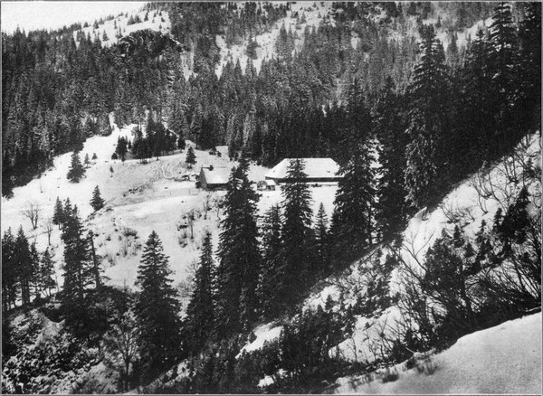 Über dem alten Seebecken des Biberkessels hin gelangen wir, immer nordwärts weiter schreitend, an die Wegscheide der Unterstmatt (930 m), dann auf dem bequemen „Mannheimer Weg“ zu dem Kurort Hundseck (886 m), mitten im Walde ganz wunderbar schön gelegen (s. Abb. 161). Haben wir vom Kniebis bis hierher schon eine nicht geringe Anzahl von stattlichen Gasthäusern angetroffen, so sind wir jetzt in ein Gebiet gelangt, das auf weite Erstreckung geradezu als ein Dorado der empfehlenswertesten Höhenkurorte gelten muß.