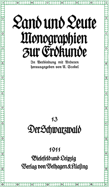 Das Original wurde in Frakturschrift gesetzt; Passagen in Antiquaschrift werden im vorliegenden Text kursiv dargestellt. Abhängig von der im jeweiligen Lesegerät installierten Schriftart können die im Original gesperrt gedruckten Passagen gesperrt, in serifenloser Schrift, oder aber sowohl serifenlos als auch gesperrt erscheinen. Die Karte des Schwarzwaldes am Ende des Buches wurde der besseren Übersichtlichkeit halber geteilt und vergrößert erneut wiedergegeben.