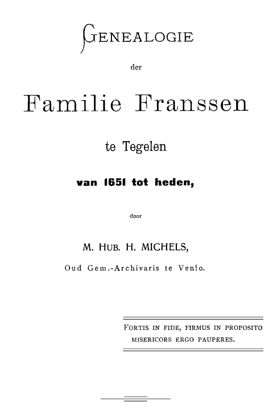 Title: Genealogie der familie Franssen te Tegelen, van 1651 tot heden