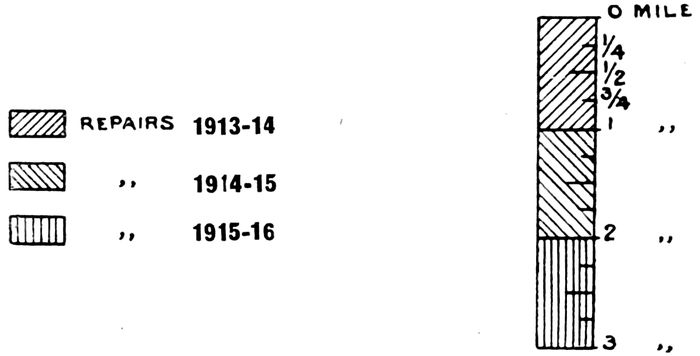 1. MacCabe’s tar-mac consists of 2 inches Pakoor stone metal, MacCabe’s patent bituminous binder of Gas Co.’s coal-tar and “Stag” brand English coal pitch in the proportion of one of tar to three of pitch by weight, with stone chippings and sand as top binder.