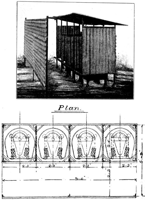 ‘The real secret of sanitation is the prompt removal of fæcal matter and refuse from the neighbourhood of inhabited buildings before it has time to decay, as in the early stage of putrefaction emanations are evolved which are dangerous to health; it is also an admitted fact that the common fly is a considerable factor in disseminating disease as it conveys germs on the pads of its feet from infected matter to the food-supply of the inhabitants.’