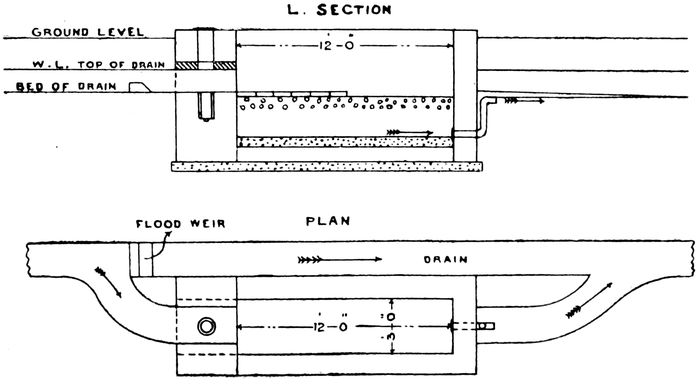 Where sullage water is discharged into storm-water drains this should be treated in sullage filters at convenient intervals. See Fig. 18, page 36.