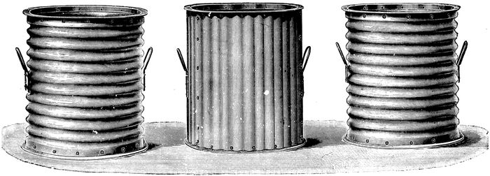 In all cases it is advisable either to provide a pump on a public well, or iron buckets with light chains and wooden pullies, so that private water drawing vessels be not lowered into the water. The pump should be fixed on the platform surrounding the well, and not on the top. A light corrugated iron roof over the mouth of a well is also useful in preventing leaves, and other impurities falling in, and also in affording shelter to the water-drawers.