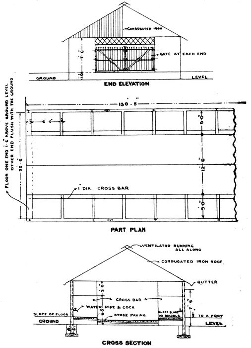 14Where tanks are used as a source of drinking water-supply, they should be properly fenced and conserved, and the water drawn by a pump. Recent researches have proved that polluted water, if stored in a tank or reservoir where it can be preserved from subsequent contamination, rapidly becomes pure. The Type plan, approved by the Sanitary Board of Behar and Orissa, is shown in Fig. 9, page 13. This for an existing tank of 100 yards square area is estimated to cost Rs. 2,700. The pumps, provided in duplicate, are Kite double action pattern and cost about Rs. 425 each. The fencing provided is the Ideal Woven wire fence, 10 strands, 48″ high, and can be fixed at about 12 annas per yard.