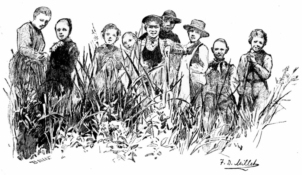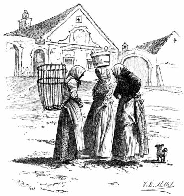 distance. The peasants rattled across the{296} fields in their farm-wagons,