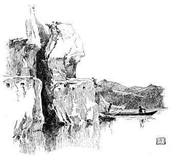 neglected landing-stages. We grounded once or twice on a mud-bank on our