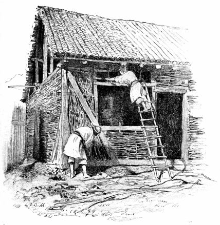 The houses are low and solidly built, and most of them have one peculiar feature—a row of columns in front, supporting a projection of the roof. They stand closely together along straight thoroughfares which are little better than canals of mud, being only a few inches above the level of the river. The foundations of the houses are raised a foot or two above these sloughs, and roughly-hewn plank sidewalks, supported by piles, extend everywhere in front of the buildings, even into the narrow side alleys where fishermen’s huts are huddled together in the marsh among reeds and willows. Two great white churches, enclosed by neat palings, occupy the middle of wide, neglected squares, and look bleak and bare and uninviting. The house we visited was of one story, but long and deep, and was comfortably, even luxuriously, furnished. The drawing-room, where we took unlimited tea and sweets, after the Russian custom, might have been in Vienna or Bucharest, with its parquet floor and ornate furniture.