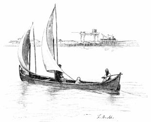 We cooked a most elaborate breakfast, made our farewell camp toilet before the nickle-plated rudder which served us as a mirror, and then parted with everything but our raiment among the sailors, who had been interested but shy spectators of all these operations. The wind was blowing half a gale, but with plenty of daylight before us we had no hesitation in tempting the dangers of the Black Sea, and about the middle of the forenoon left the cheery company happy in the possession of all our pots and pans, and set out in the direction of Sulina. The sailors assured us that we would not be able for several days to enter the river on account of the breakers running at the bar, but we proposed to skirt the coast as far as we could go, and then see what would turn up.