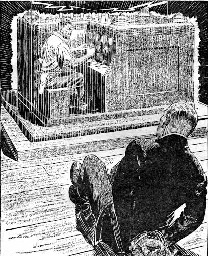 The scientist's burly assistant glanced wearily up from where he coupled heavy batteries in series at the rear of the glittering machine that entirely filled one corner of the windowless room.