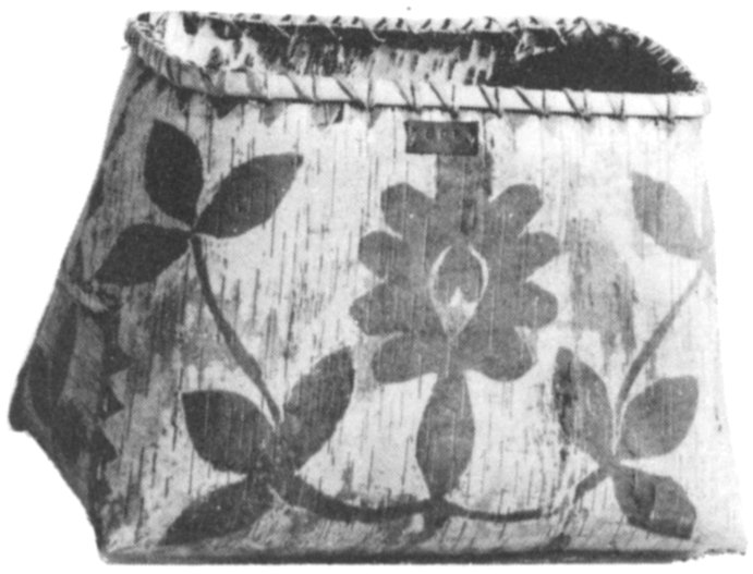 This rare, small birch bark pail is called a “Mourning Bowl.” It is used during the Feast of the Dead, a sacred ceremony which is held one year after burial to honor the deceased. During the Ceremony of the Mourning Bowl, food is placed in the bowl and passed to the mourners. After the ceremony, the basket containing food is giving a final blessing and is placed on the grave of the deceased. (See Plate 17d)