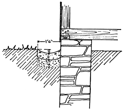 Dig a trench 12 inches wide along the edge of the open ditch 2 feet below its bottom and under the end of the line of tile. This trench should extend along the bank for from 4 to 6 feet, with wings turned into the bank at its ends, sufficiently long to prevent water from getting in behind the wall and washing the dirt out.