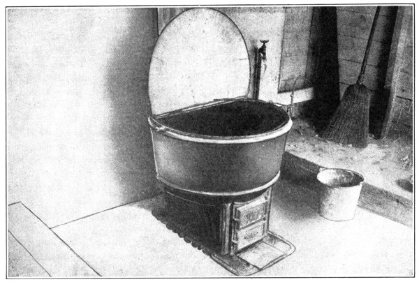 The modern farmer no longer puts up with such barbaric practice. Cess-pools have long been prohibited in cities, where immense sums of money are spent for the proper disposal of sewage. It is not possible to provide farms with these expensive plants, nor is it necessary. Through the use of an inexpensive septic tank all of the conveniences of the toilet and bath may be installed in the house and the danger from sewage removed.