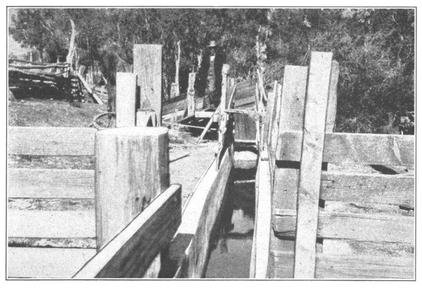 The box culvert shown in the illustration on page 108 has an opening 18 inches wide and 16 inches deep. The length is 20 feet. The retaining walls are 8 inches thick, 2 feet high (from the barrel opening), and do not extend beyond the culvert walls. The bottom and the side walls are 6 inches thick; the top, 8 inches. Three men, with a highway commissioner as superintendent, built this culvert in two days.