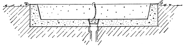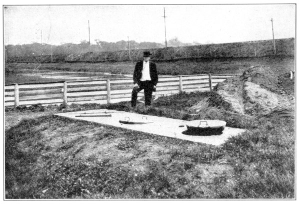 The proper method for the disposal of house sewage is an important question on the farm. Cess-pools, simply pits dug in the ground, are great disease spreaders. The liquids from them seep through the ground, carry germs from the pool to the well, render “the best drinking-water in the country” unfit for use, and often cause the spread of disease.