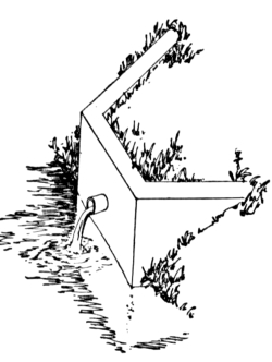 Where drain tile empty into an open ditch, the banks of the ditch around the drain tile gradually wash away, and often two and three lengths of tile become disjointed, allowing the water from them to further cut away the field land. These exposed tile are often crushed by livestock. Moreover, clay and shale tile freeze, crumble, and mixed with the earth from the bank frequently close the outlet. Muskrats, skunks and mink use the tile as a nesting place, and the drain becomes stopped up and drowns out the crops.