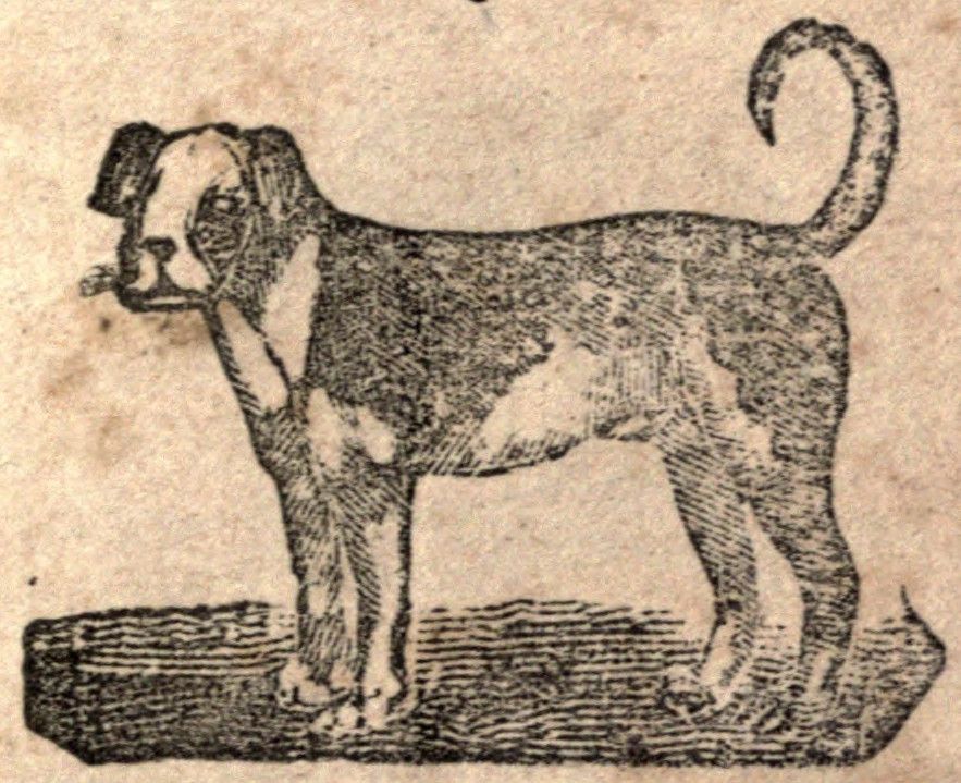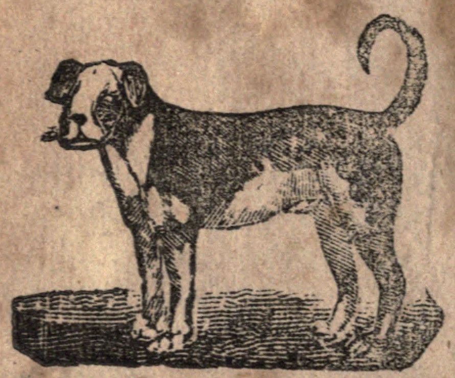The Dog is a social animal, and is the companion of man in all civilized countries. He varies in size, from the little lap-dog, to the large mastiff, and hound. Some of them are used to guard property from {4}thieves.
