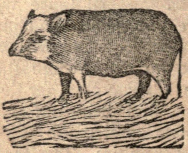 The Pig is not a very handsome animal, but makes excellent food. He never seems to be tired of eating, and if he has plenty of food only stops to sleep or wallow in the dirt. He makes a sharp squealing noise when hungry.