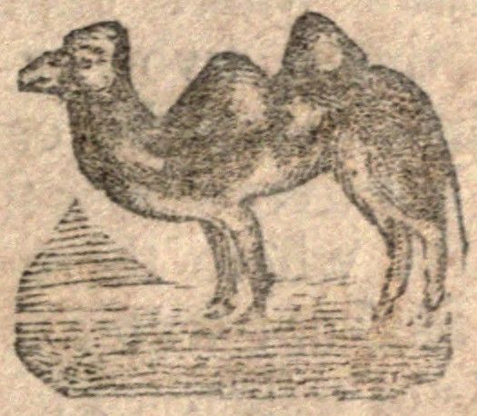 The Camel is a native of Africa, and Arabia. It has two humps upon its back between which the natives lash their burdens. They have very long legs, and are thus able to travel through the deep sands, where no other {8}animal can go. They have also an extra stomach where they can deposite water enough to last them two or three weeks. Thus the camel is able to travel across the long deserts where there is neither food nor water for hundreds of miles. The camel is very patient, and never complains if he is able to carry the load, but if not he sinks upon the ground, uttering the most piteous cries. The Arabs often eat their flesh, and make butter of their milk.