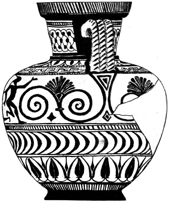 1579. Mém. Acad. Inscr. et B.-L. XXXVI. (1898), p. 394, fig. e = Arch. Zeit. XLIII. (1885), pl. VIII. 1. Just after Helbig’s publication another Attic Geometric vase was published by Skias from his excavations at Eleusis, which shows a ship’s crew attacking men on land, Arch. Eph. 1898, p. 110, and pl. V. 1.