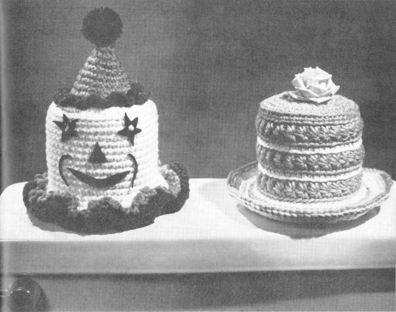FINISHING: Sew hat to top of tissue topper. Cut eyes, nose, mouth and lines as illustrated with felt. Glue in position.