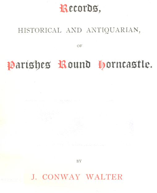 In perusing the following pages, readers, who may be specially interested in some one particular parish with which they are connected, may in certain cases be disappointed on not finding such parish here described, as they have previously seen it, along with the others, in the columns of the “Horncastle News,” where these ‘Records’ first appeared. This may arise from one of two causes:—