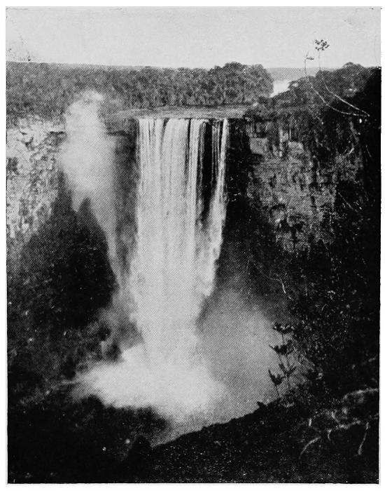 The problem of improving the Colony’s lines of communication into the interior may be said to be the problem of circumventing the Essequebo River. For instance, it is the Essequebo and its tributary the Rupununi which ought to form a natural highway across British Guiana to Brazil. But the cattle-track, just opened to Georgetown from the Colony’s lowland savannahs near the Brazilian border, studiously avoids the Essequebo, which it touches only at Kurupukari, there crossing the river and leaving it for good. Again, the Essequebo and its tributary the Cuyuni should form the main avenue of approach from British[30] Guiana to Ciudad Bolivar on the Orinoco, in the heart of Venezuela. But it is very likely that, when the time comes for linking this Colony to Venezuela by road or railway, the line will but touch the Essequebo to bridge its estuary, and then make across country to the Tumeremo savannahs. Similarly, the problem of reaching Kaietuk and the highland savannahs of British Guiana has now become the problem of avoiding the Essequebo.