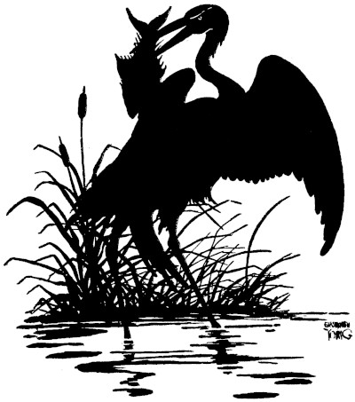 [87] Then the Crane picked up another Fish and carried it away. Not to the pool, but into the woods where the other Fishes could not see them.