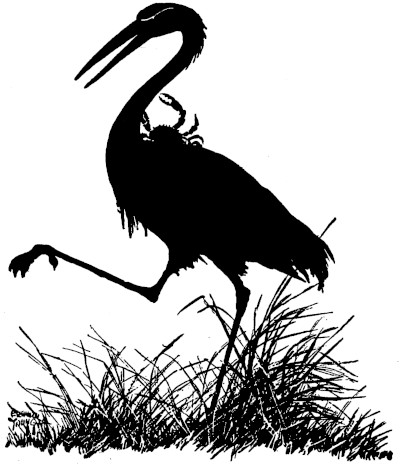 "Little Crab," said the Crane, "would you let me take you to the fine pond in the deep woods where I took the Fishes?"
