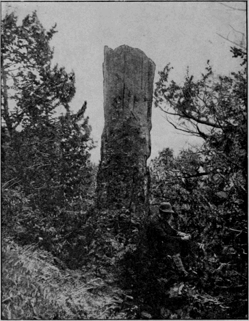 The Scots pine shares with the oak, the beech, the aspen, the yew, and several other trees the right to be included in the native flora of Britain. In the peat-beds of Scotland even up to 3000 feet above sea-level the stumps of pines occur in abundance, and in many places recent researches have revealed the occurrence of successive forests of pines, oaks, and spruces separated from one another by the accumulations of swampy vegetation(9). The spruce fir has long ceased to be a member of the British flora, but in a few localities in the Scottish Highlands patches of primeval pine forests remain. The « 13 » accompanying photograph (Fig. 1), taken by my friend Mr A. G. Tansley, in the Black Wood of Rannoch in north-west Perthshire, shows a few trees of Pinus sylvestris growing in their native soil: the form of the older tree (A) suggests comparison with that of a well-grown beech such as we are familiar with in English plantations. This spreading dome-shaped habit seems to be a peculiarity of the Highland tree, and is one of the characters which have led some botanists to regard it as a variety (Pinus sylvestris var. scotica) of the ordinary Scots pine. Though it is doubtful if any relics of primeval pine woods are left in England, abundant evidence of the former existence of the Scots pine is afforded by the submerged forests exposed at low-tide on many parts of the English and Welsh coasts and at the base of some of the English peat moors. During the construction of the Barry docks on the north coast of the Bristol Channel a few years ago, the exposed sections of peat and forest beds were investigated by Dr Strahan and by Mr Clement Reid. There is evidence of a subsidence of the land to an extent of 55 feet since the formation of the lower peat-beds containing oak, hazel, willow, and other trees. The pine, unknown in Wales during the historic period, was recognised in the Barry cutting. The occurrence of a polished flint implement assigns a date to the uppermost portion of this old land-surface(10).