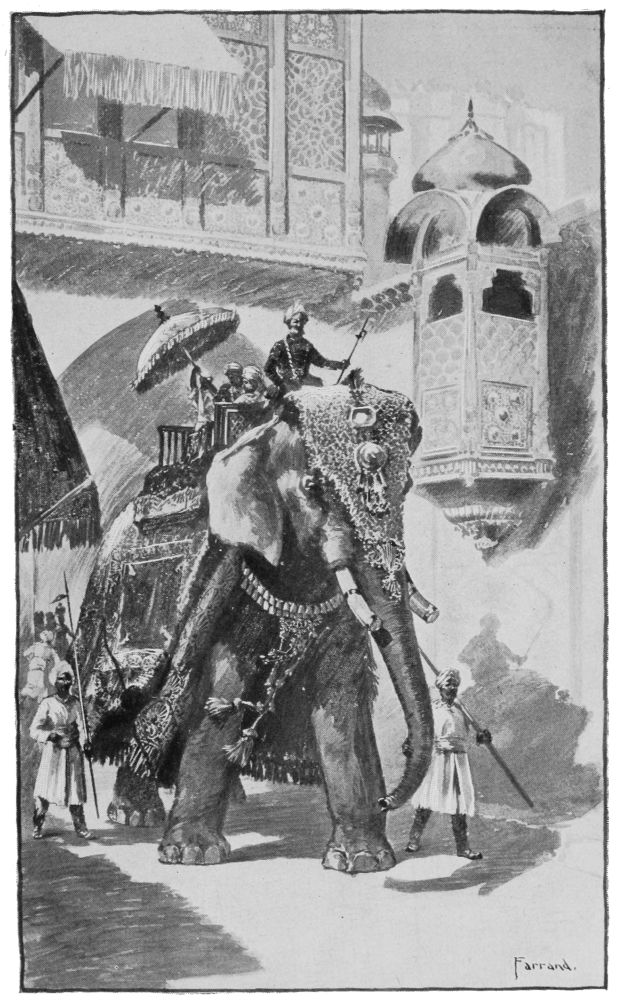 The fortress-crowned hills look down upon the strange medley. One of them bears on its flank in huge white letters the cheery inscript “Welcome!” This was made when the Prince of Wales visited Jeypore to shoot his first tiger; but the average traveller of to-day may appropriate the message to himself, for Jeypore takes great care of strangers and shows them all courtesy. This, by the way, demoralises the Globe-Trotter, whose first cry is:—“Where can we get horses? Where can we get elephants? Who is the man to write to for all these things?”