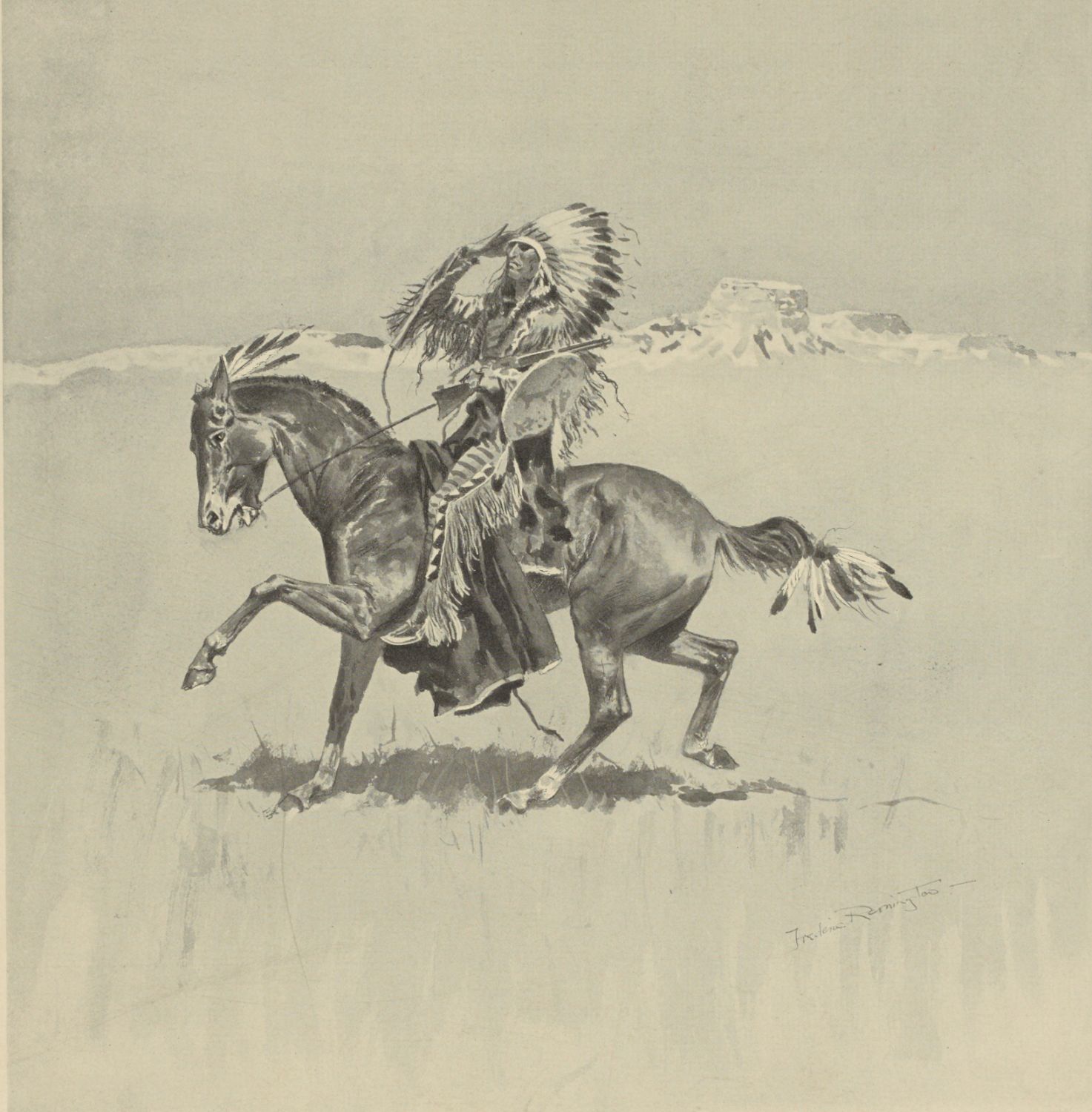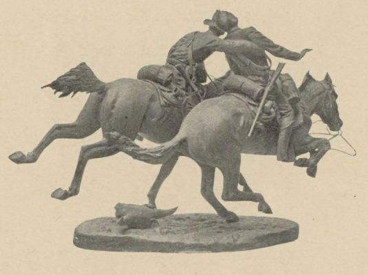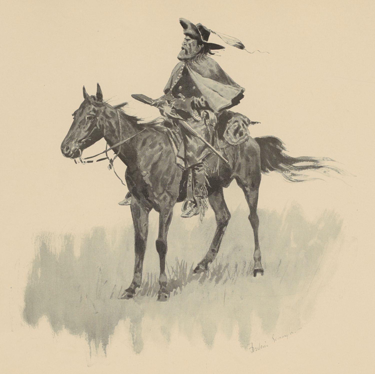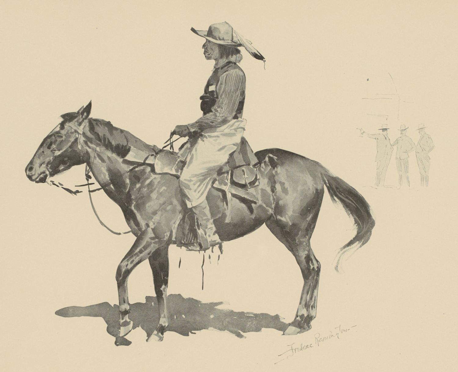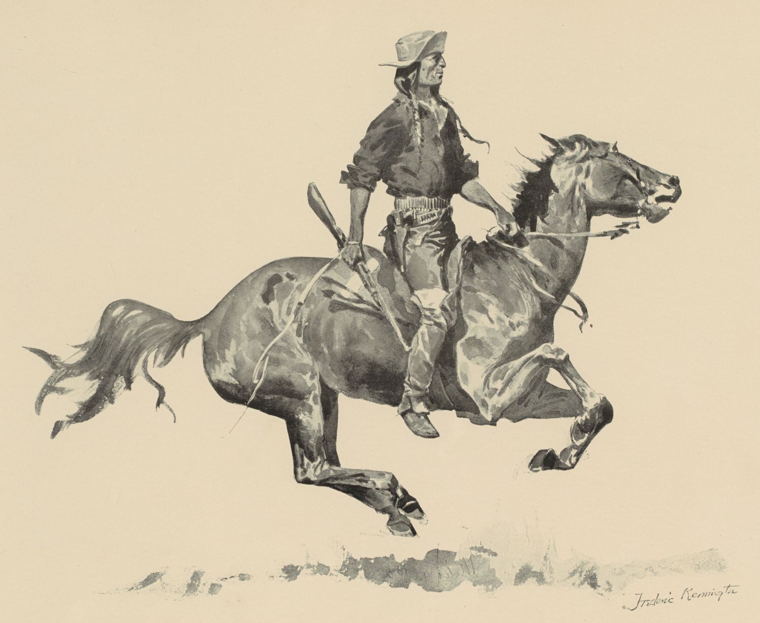 At any rate I am glad that we have Remington, one of the kind that makes us aware of things we could not have seen for ourselves. We have been scarce enough in native material for Art to let go what the soil provides us. We have often failed to value what the intelligent foreigner seizes upon at once. And I think as the Frontier recedes into tradition, fewer of us will shrink from its details. If Remington did nothing further, already has he achieved: he has made a page of American history his own.
