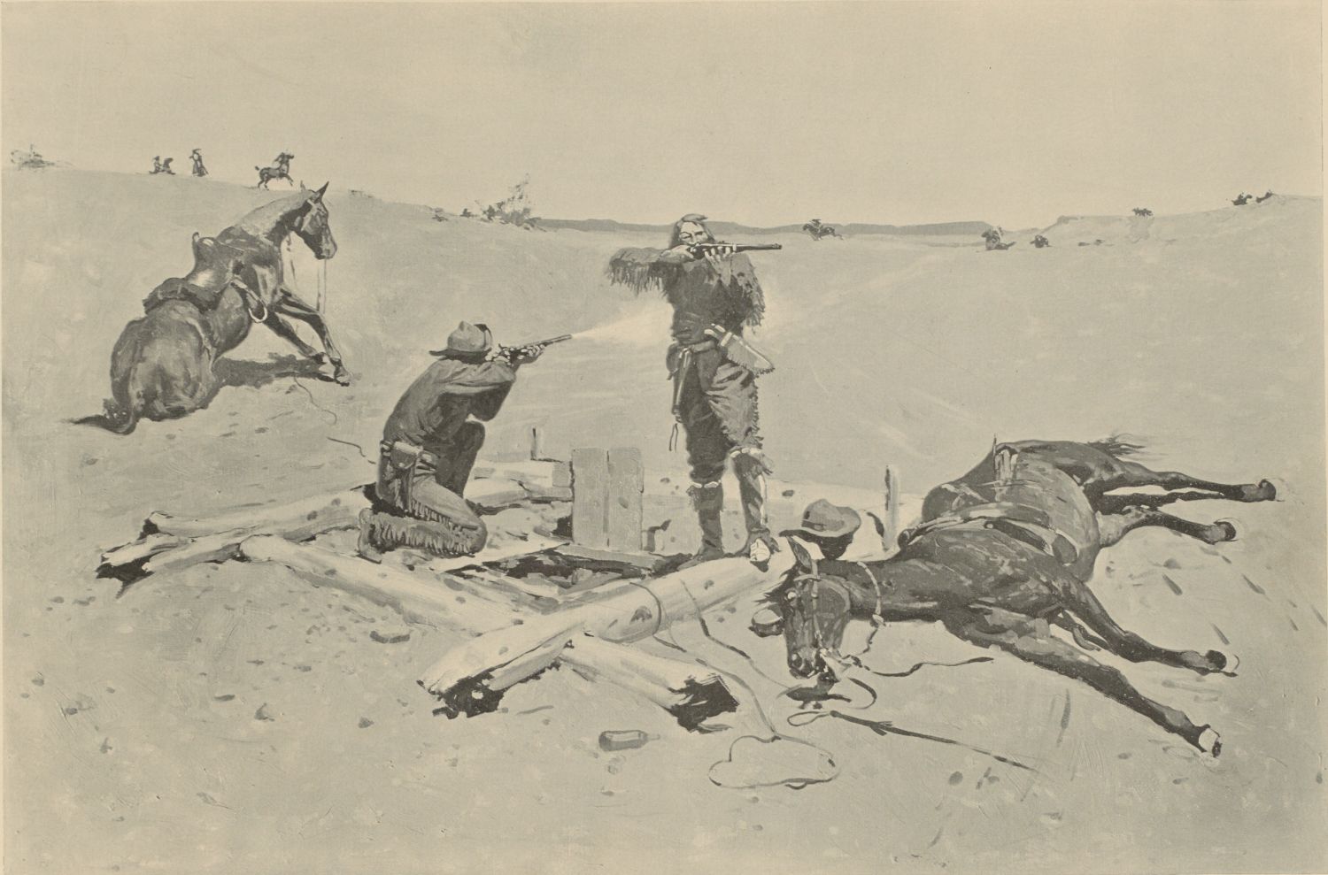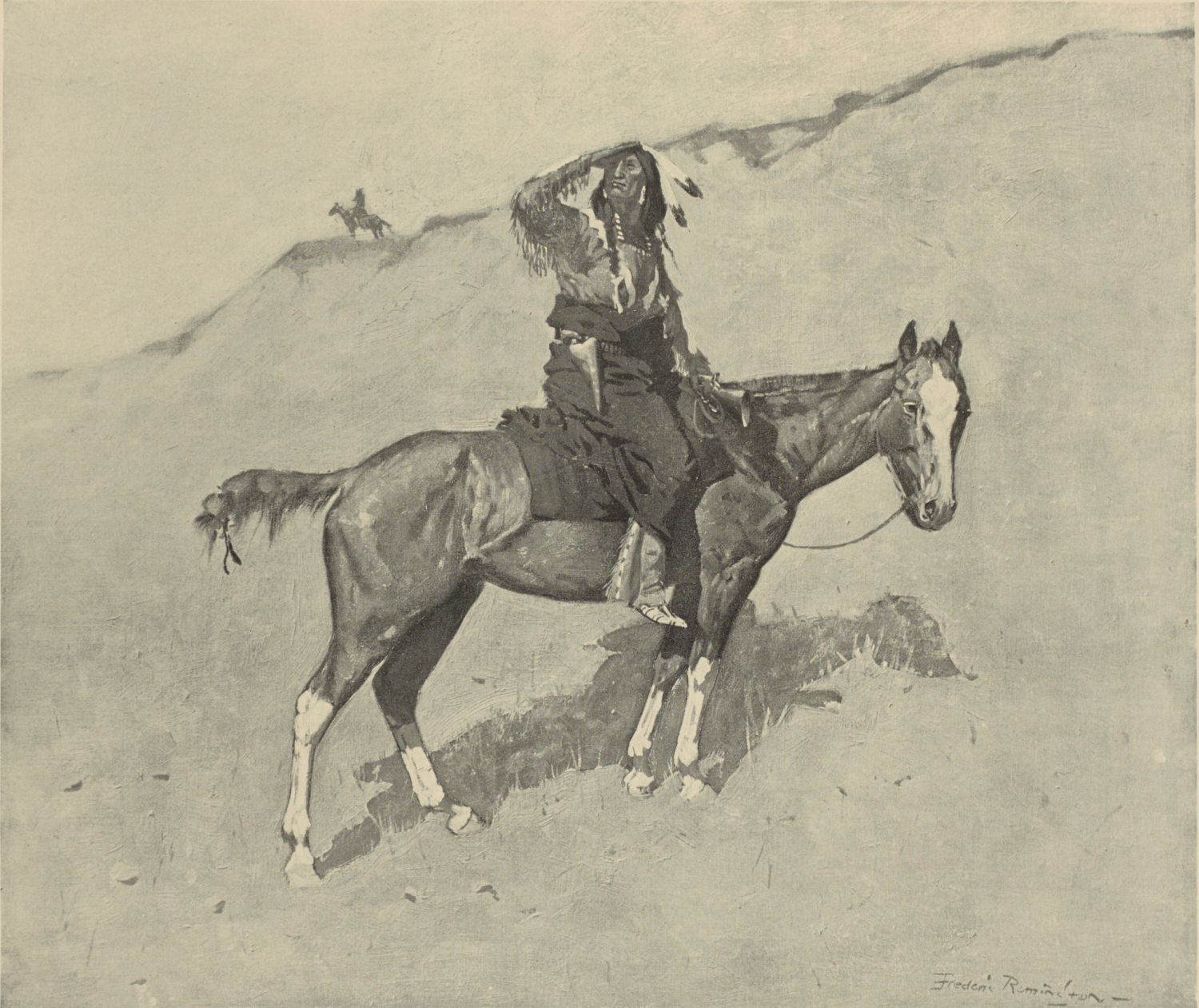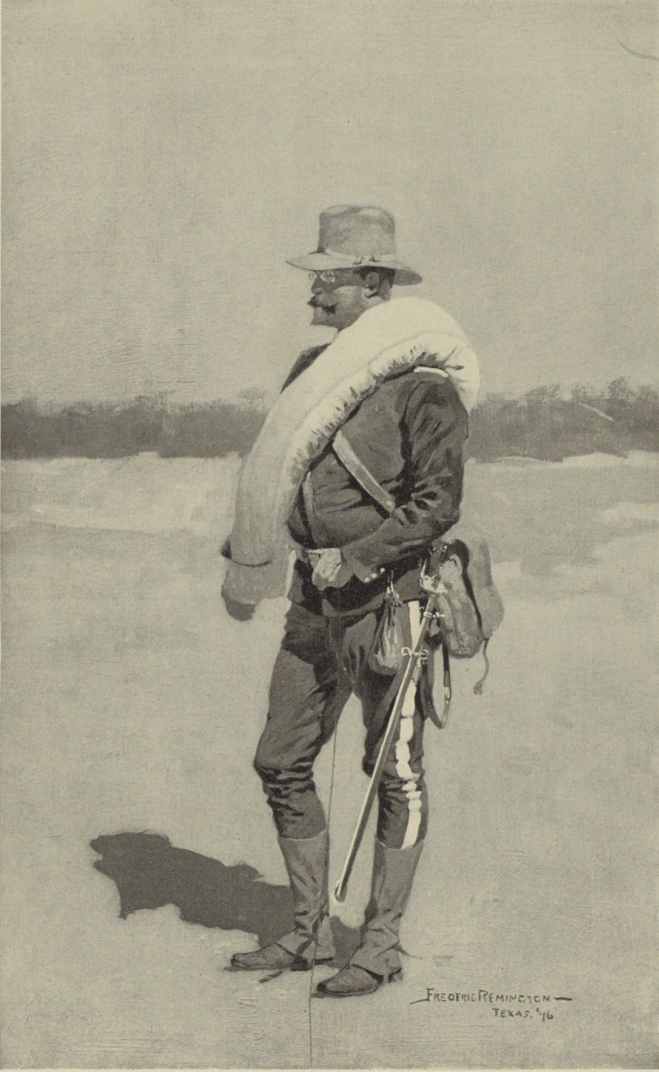 At any rate I am glad that we have Remington, one of the kind that makes us aware of things we could not have seen for ourselves. We have been scarce enough in native material for Art to let go what the soil provides us. We have often failed to value what the intelligent foreigner seizes upon at once. And I think as the Frontier recedes into tradition, fewer of us will shrink from its details. If Remington did nothing further, already has he achieved: he has made a page of American history his own.