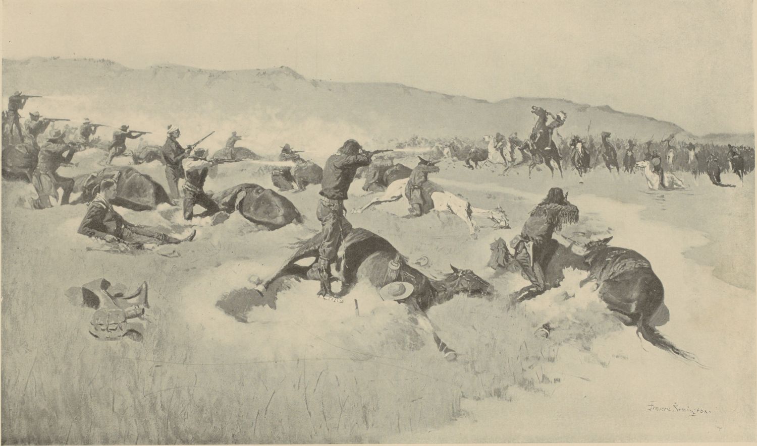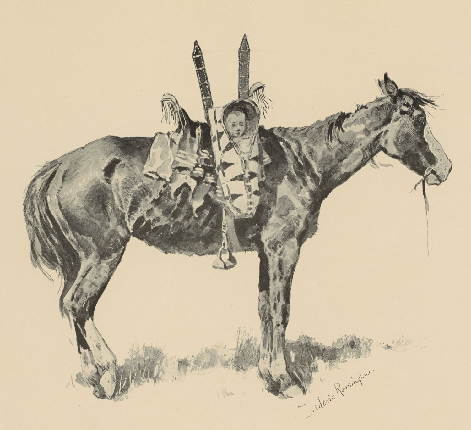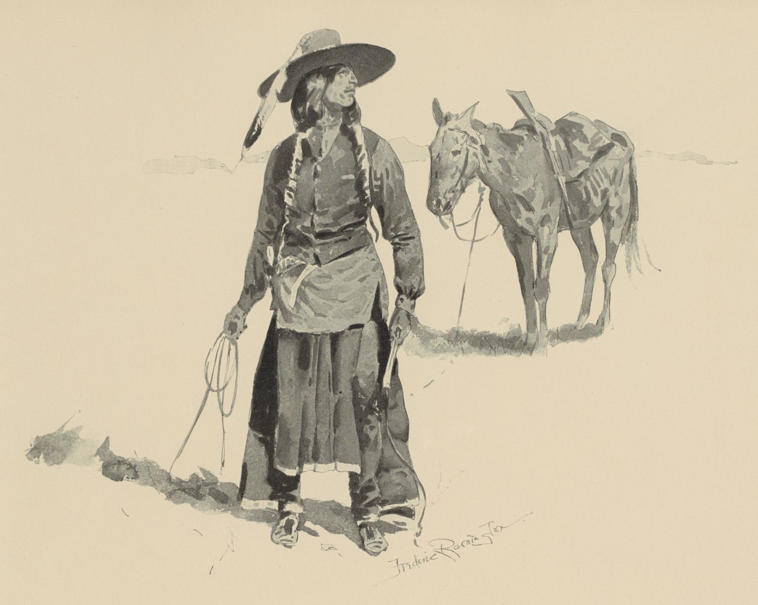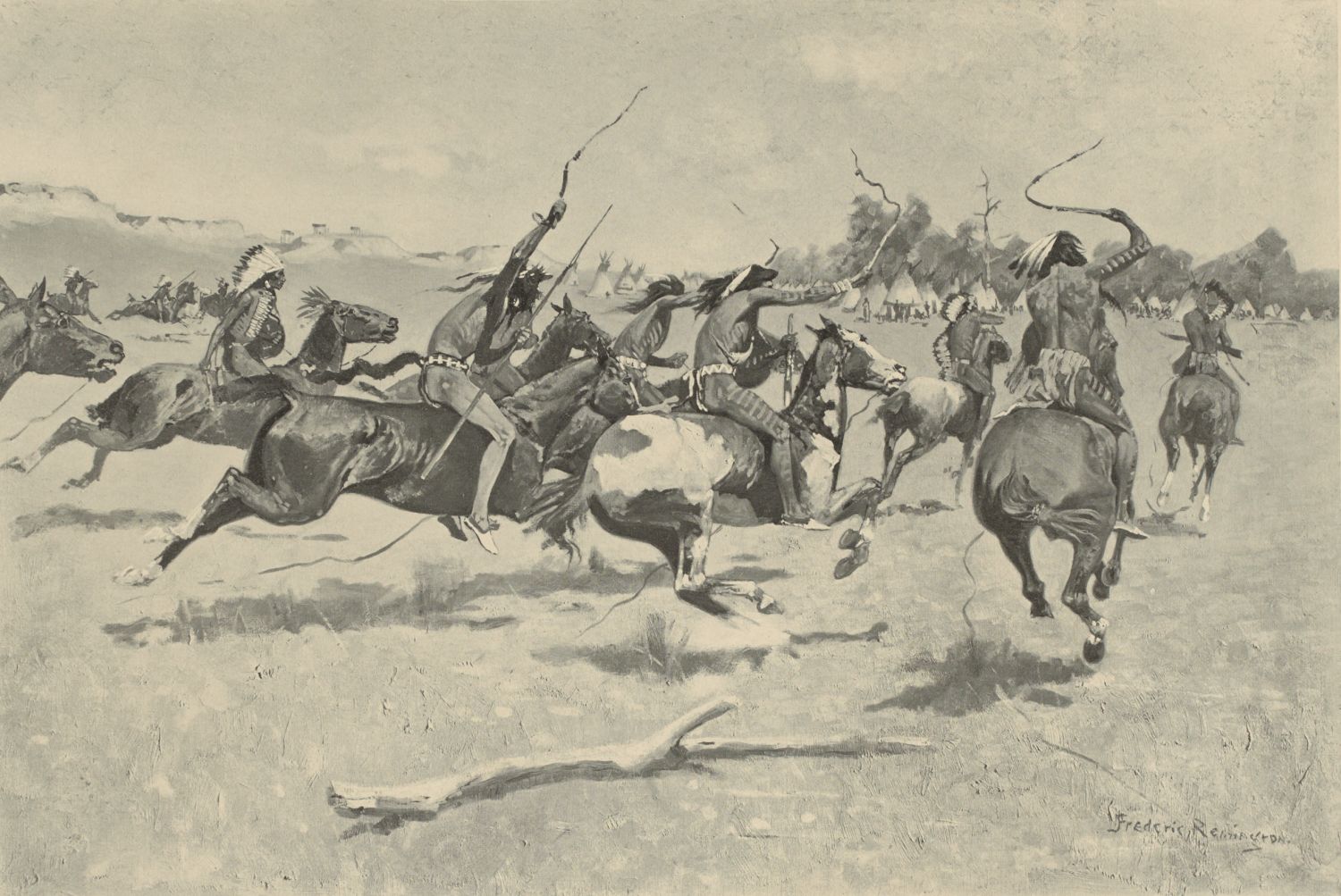 At any rate I am glad that we have Remington, one of the kind that makes us aware of things we could not have seen for ourselves. We have been scarce enough in native material for Art to let go what the soil provides us. We have often failed to value what the intelligent foreigner seizes upon at once. And I think as the Frontier recedes into tradition, fewer of us will shrink from its details. If Remington did nothing further, already has he achieved: he has made a page of American history his own.