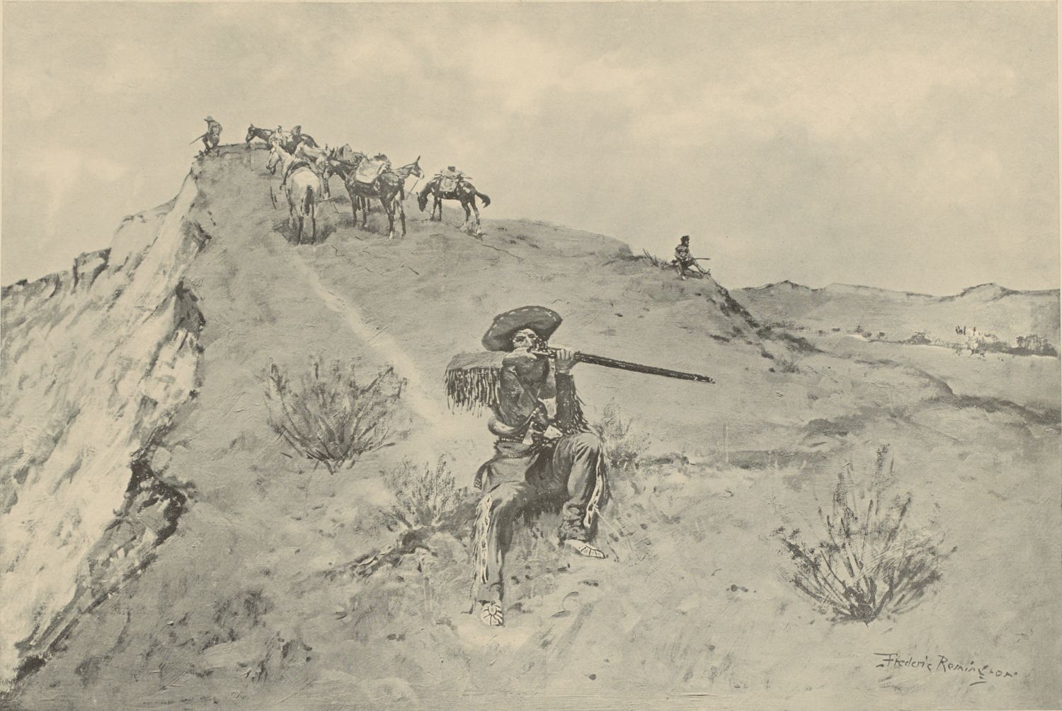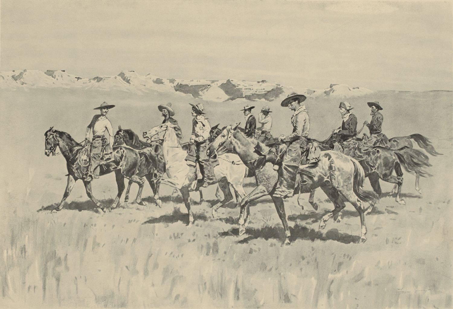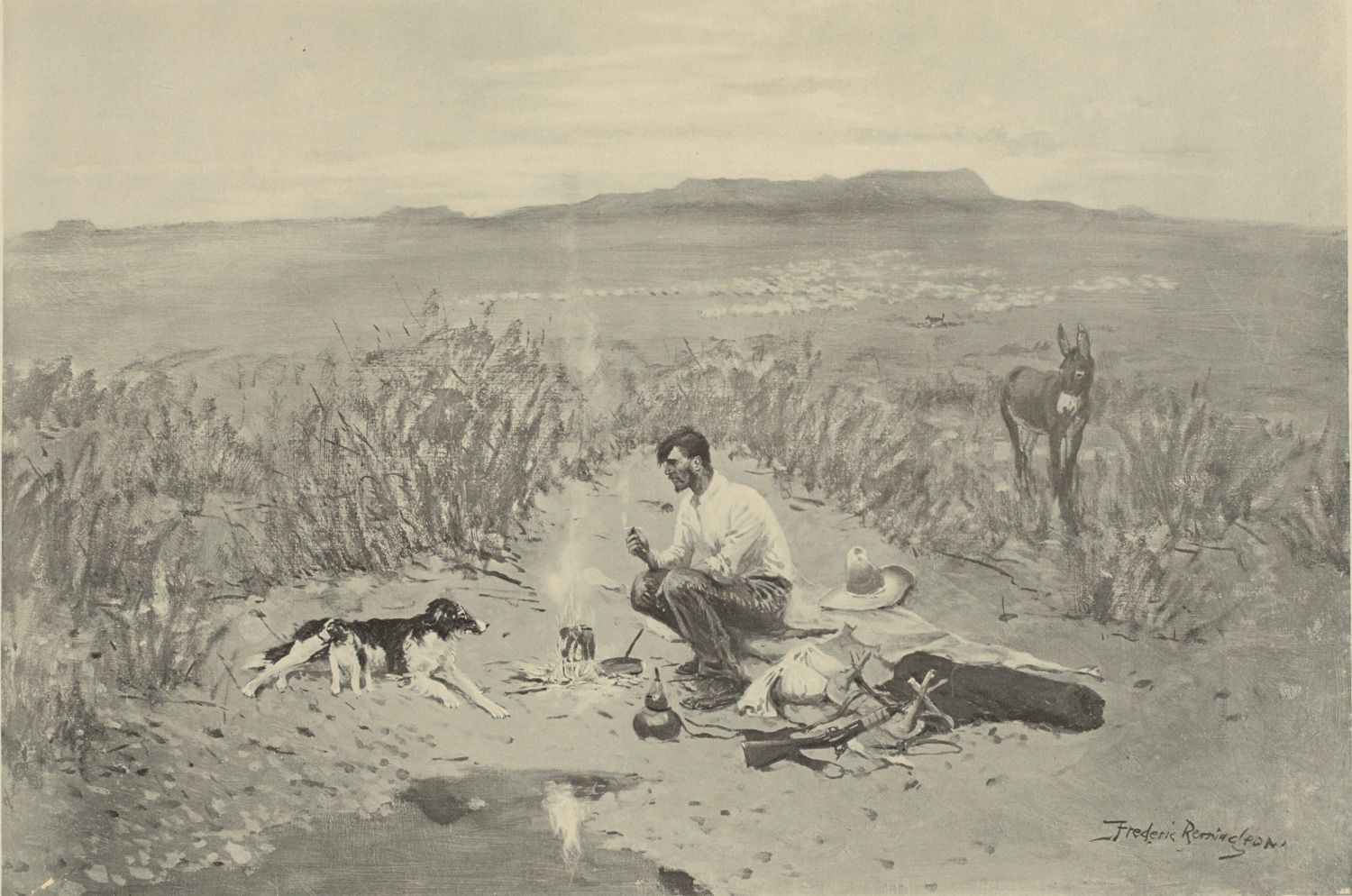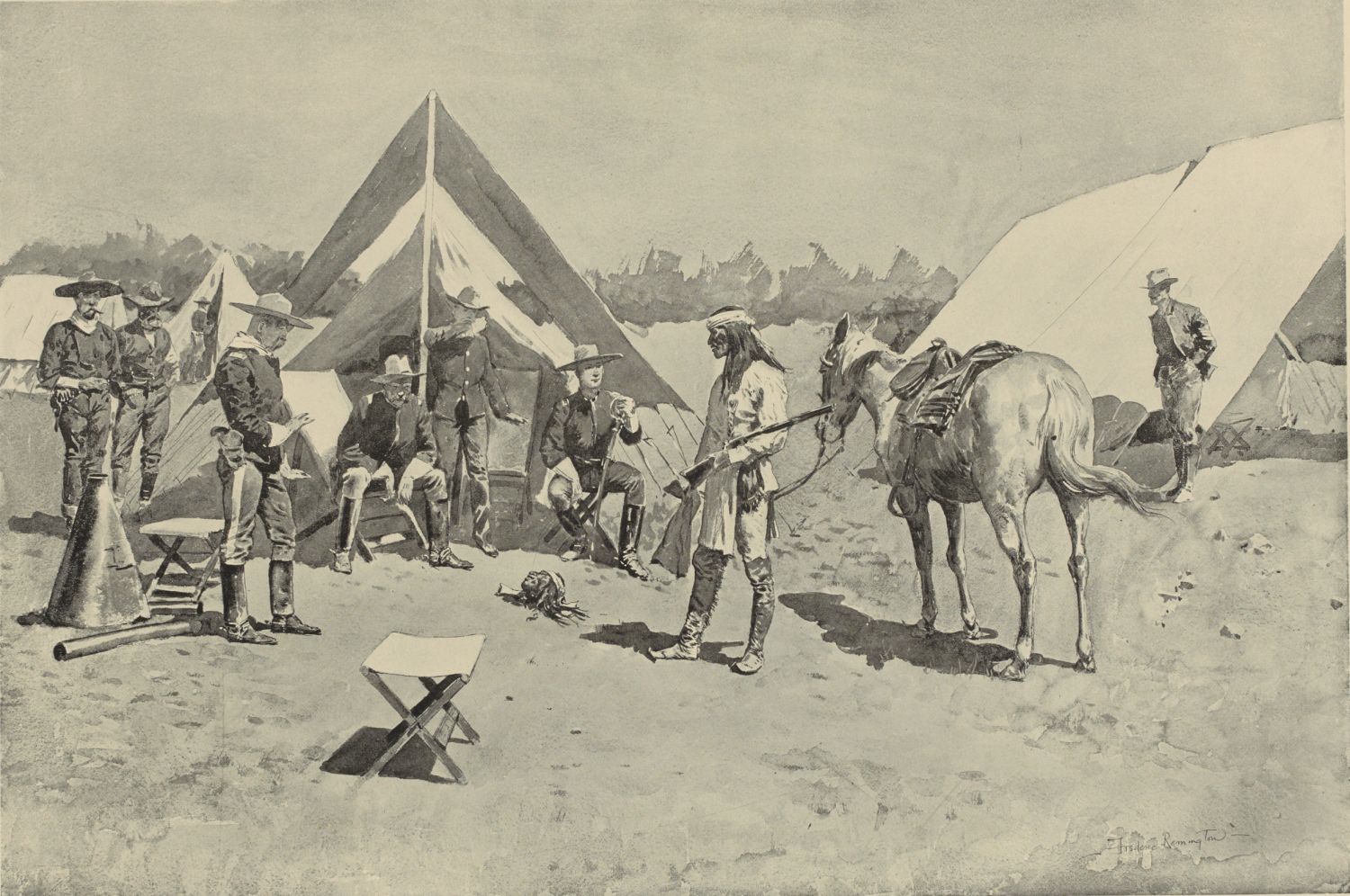 SOME time ago I was spending a driven but happy forenoon among those shops where guns, and fishing tackle, and tents, and all the various necessities of a Western holiday are found. My time was crowded, and against the column of items on my list only a few checks had been made, when I reached “Groceries.” Now, unless you have spent such forenoons and holidays yourself, the visit among the guns and fishing tackle may seem to raise questions of greater moment than any which could occur in the grocery shop. But this is not so. A man soon learns what weapons he prefers, and enters with his mind settled in advance; whereas, when it comes to evaporated vegetables, condensed soups, and pellets that can expand into a meal, you pause over each novelty, and with divided purpose wretchedly choose and unchoose until you are scarce more manlike than a woman. At least, such is my case; and having no minutes to squander this forenoon, I had pencilled my supplies to avoid discussion and temptation. Even while I was directing how I wished the parcels tied, mentioning that they were to be much jolted on the backs of horses, the shopman looked suddenly alert, and said this sounded like a camping trip. Yes, I told him in my elation, I was bound for the head waters of Wind River in Wyoming. Instantly the merchant fell from him; every trace of groceries left his expression; his eye beamed with eagerness, and he asked in the voice of one who gives the countersign, “Have you ever been to Arizona?” and hearing that I had, “I served there under Crook!” he exclaimed. Then names of the North and the South came to his lips—San Carlos, San Simon, the Gila, the Chiricahuas, the Tonto Basin, the forks of the Owyhee, Boise, Bidwell, Harney—he spoke of many familiar to me; and next we were hard at it, this old soldier and myself, exchanging enthusiasms, gossiping in comradeship among the dried prunes. Thus I wasted minutes that I could not spare, yet lost nothing by it; my parcels were put up right. And when this errand was finished, he watched me depart from the shop door, and sighed, “I should like to see it all again!”