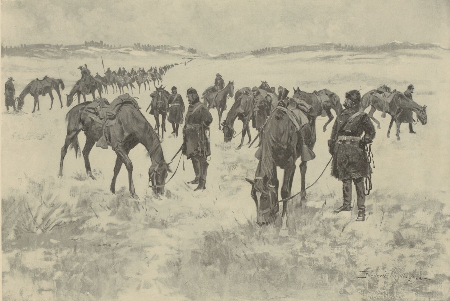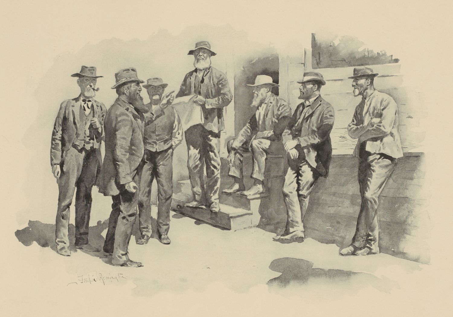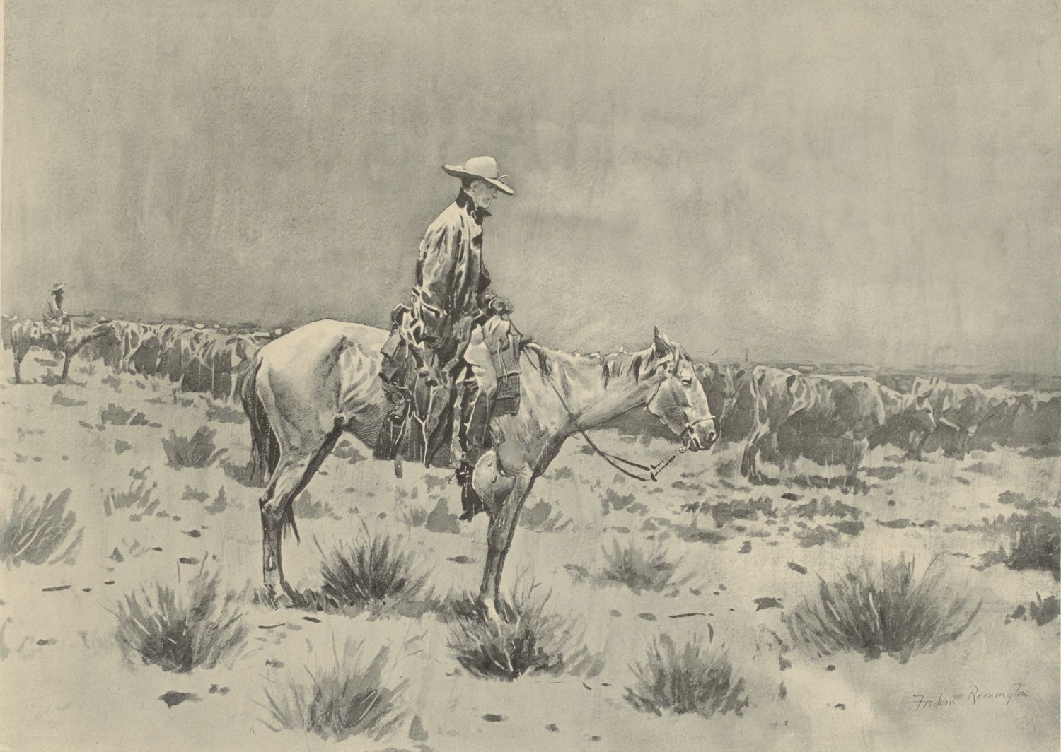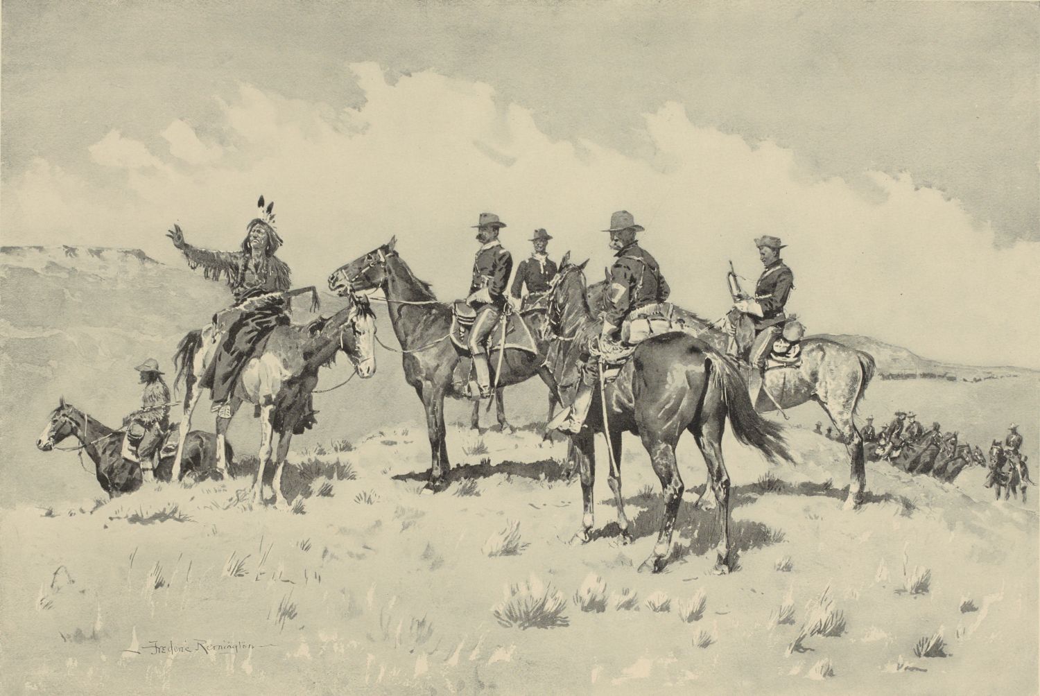 SOME time ago I was spending a driven but happy forenoon among those shops where guns, and fishing tackle, and tents, and all the various necessities of a Western holiday are found. My time was crowded, and against the column of items on my list only a few checks had been made, when I reached “Groceries.” Now, unless you have spent such forenoons and holidays yourself, the visit among the guns and fishing tackle may seem to raise questions of greater moment than any which could occur in the grocery shop. But this is not so. A man soon learns what weapons he prefers, and enters with his mind settled in advance; whereas, when it comes to evaporated vegetables, condensed soups, and pellets that can expand into a meal, you pause over each novelty, and with divided purpose wretchedly choose and unchoose until you are scarce more manlike than a woman. At least, such is my case; and having no minutes to squander this forenoon, I had pencilled my supplies to avoid discussion and temptation. Even while I was directing how I wished the parcels tied, mentioning that they were to be much jolted on the backs of horses, the shopman looked suddenly alert, and said this sounded like a camping trip. Yes, I told him in my elation, I was bound for the head waters of Wind River in Wyoming. Instantly the merchant fell from him; every trace of groceries left his expression; his eye beamed with eagerness, and he asked in the voice of one who gives the countersign, “Have you ever been to Arizona?” and hearing that I had, “I served there under Crook!” he exclaimed. Then names of the North and the South came to his lips—San Carlos, San Simon, the Gila, the Chiricahuas, the Tonto Basin, the forks of the Owyhee, Boise, Bidwell, Harney—he spoke of many familiar to me; and next we were hard at it, this old soldier and myself, exchanging enthusiasms, gossiping in comradeship among the dried prunes. Thus I wasted minutes that I could not spare, yet lost nothing by it; my parcels were put up right. And when this errand was finished, he watched me depart from the shop door, and sighed, “I should like to see it all again!”
