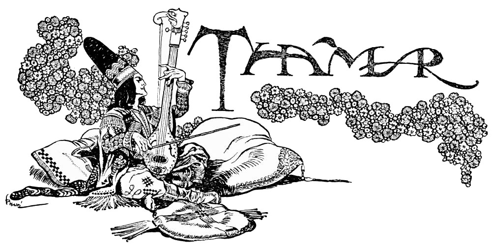 The woman looks again at the distant scene; then turns to another with a whispered word. At the movement heads are turned, figures that seemed indolent lose their sloth. Something is toward; the whispers are pregnant with meaning. Thamar alone, recumbent on her couch, gives no sign of life. One might suppose she slumbered, but for the cat-like swiftness with which, at a word from one of her attendants, she turns towards the window. Half raising herself, as a stalking leopard lifts shoulders and neck to watch its distant prey, she takes a wisp of gauze from her pillow and slowly waves it above her head. A stranger, errant among the lonely mountain sides, has espied the castle, and approaches. Even now he stands below the walls gazing at the fateful casement. Twice and again the seductive signal is repeated. Its purpose then appears to be achieved, for the scarf is dropped and Thamar, springing from the couch, turns to her expectant court.{42}