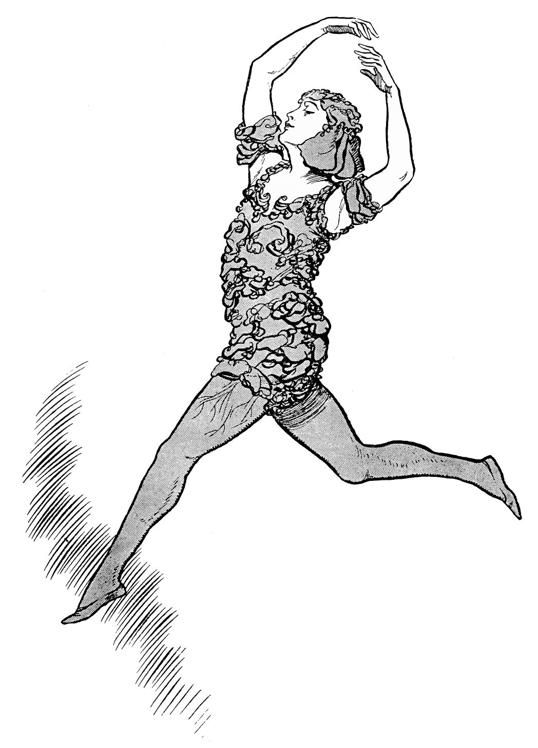 This lapse of the ballet into desuetude accounts very largely for the extraordinary success of the Russians, who burst dazzlingly upon the gaze of a listless public, and demonstrated that ballet, which had come to be synonymous with banality, could be made both a forceful and a beautiful vehicle of artistic expression. There had been forerunners of the “Russian invasion”—brief appearances of one or two of the most distinguished dancers in isolated performances at a London variety theatre; but it was not until the complete Russian Ballet, as organised by M. Serge de Diaghilev, made its bow, en grande{5} tenue, at the Covent Garden Opera House, that the London public awoke to recognition. The descriptive power of music it knew, “wordless plays” were not unfamiliar, pas seuls and pas de deux it had seen performed in countless number by accomplished dancers of every nationality and style. But the art of the ballet, which combines music, pantomime and the dance, was a revelation, and its enthusiasm was great.