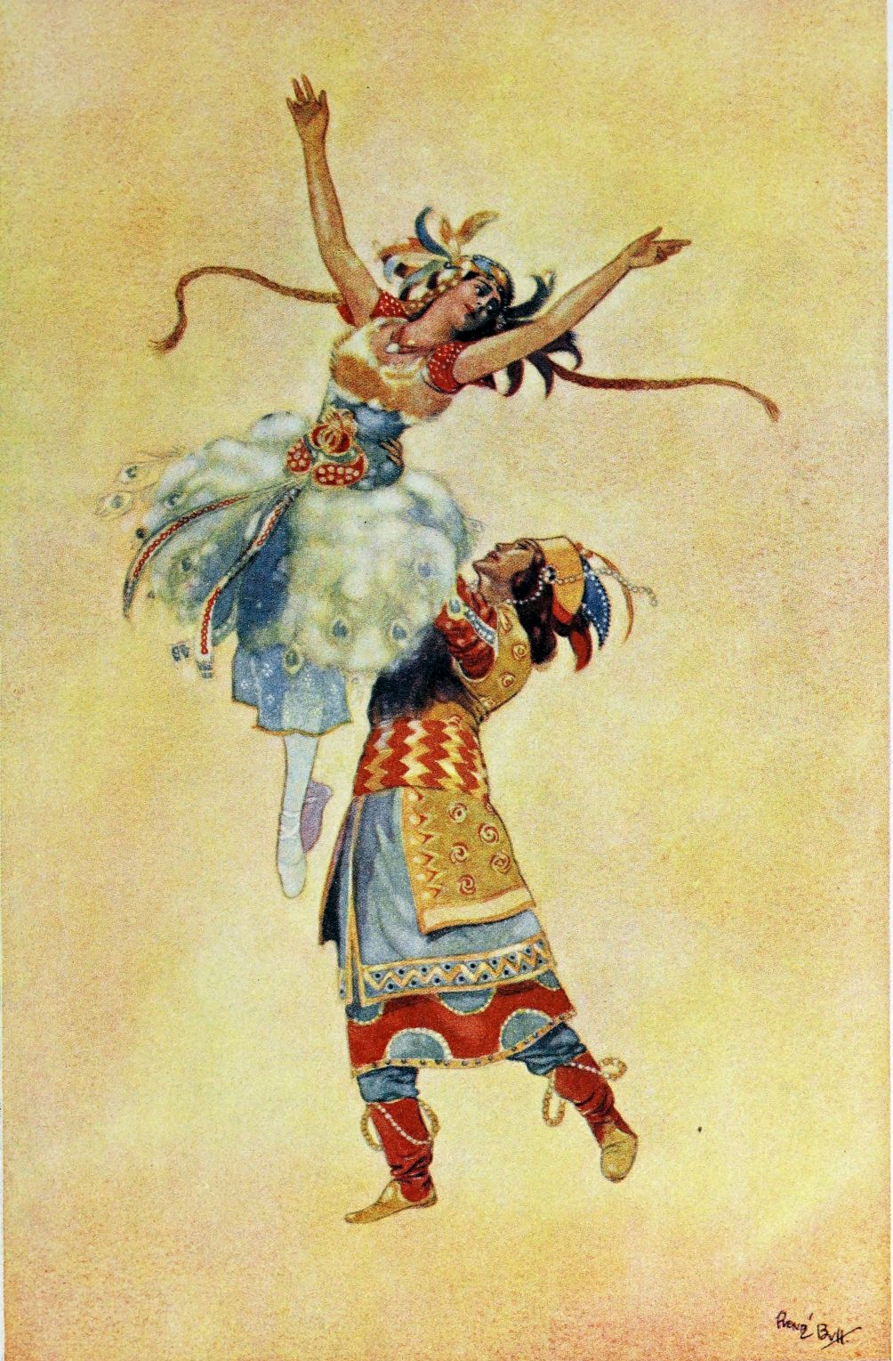 The second outstanding personality is that of M. Léon Bakst, to whose designs for scenery, costumes, and all that is summed up in the convenient word décor, many of the ballets in the Russian repertoire owe no small part of their success. The impression made by the scenic methods of Léon Bakst was a worthy parallel to that effected by the performance of the dancers—or perhaps one should say that the two were but inseparable parts of the same thing, since the services of Bakst to the Russian Ballet have been not less than the opportunities which the Ballet has furnished to Bakst. One scarcely thinks of the one without the other.
