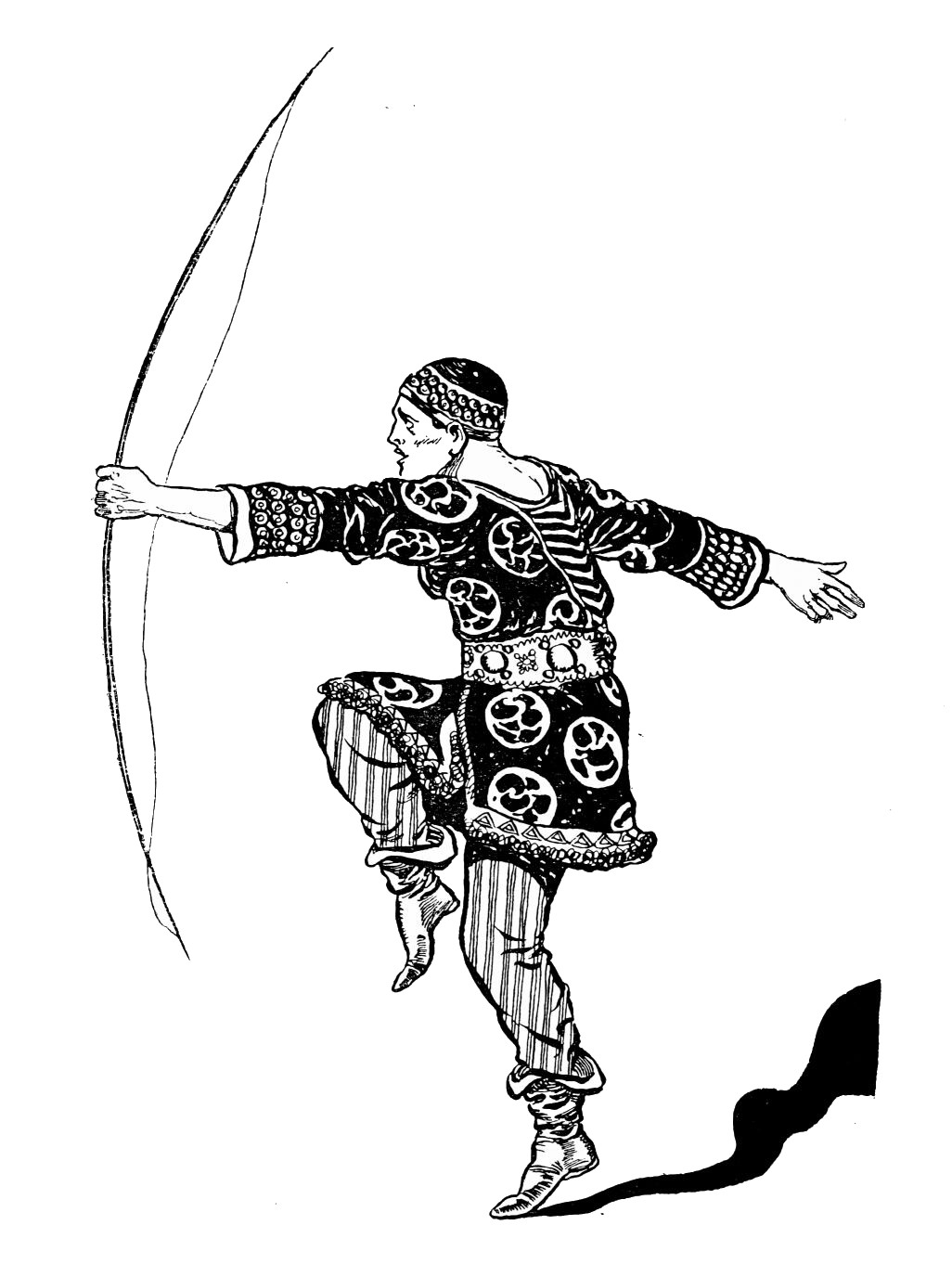 In Russia the ballet has never been allowed, as elsewhere, to die of starvation and inanition. Apart from State encouragement of the dancer’s art, an outlet has been provided for the musician and the decorative painter and designer. The result is that a ballet, as understood in Russia, is no mere excuse for the exploitation of individual talents, but a work of art in itself, to the achievement of which the energies and abilities of all concerned are subordinated. Undoubtedly it is the unity of purpose, the wonderful ensemble, which the Russian ballets exhibit that catches the imagination of the spectator. It is significant that their best performances are those which are wholly, or at least in chief part, of native production, and deal with native or closely kindred subjects. Indeed, for their success in attaining coherence and unity the Russians have to thank, perhaps, their comparative isolation and remoteness from Western European civilisation. Their art is strong because native. Endorsement of this suggestion is to be found in the virility of the Russian operas of Moussorgsky and Rimsky-Korsakov, which made as profound an impression on their first performance in London as did the Russian ballets before them. Beside such works of art as “Boris Godounov,” “La Khovantchina,” and “Ivan the Terrible,” the modern French and Italian operas seem pitifully patched and thin, sadly lacking in balance and proportion.{6}